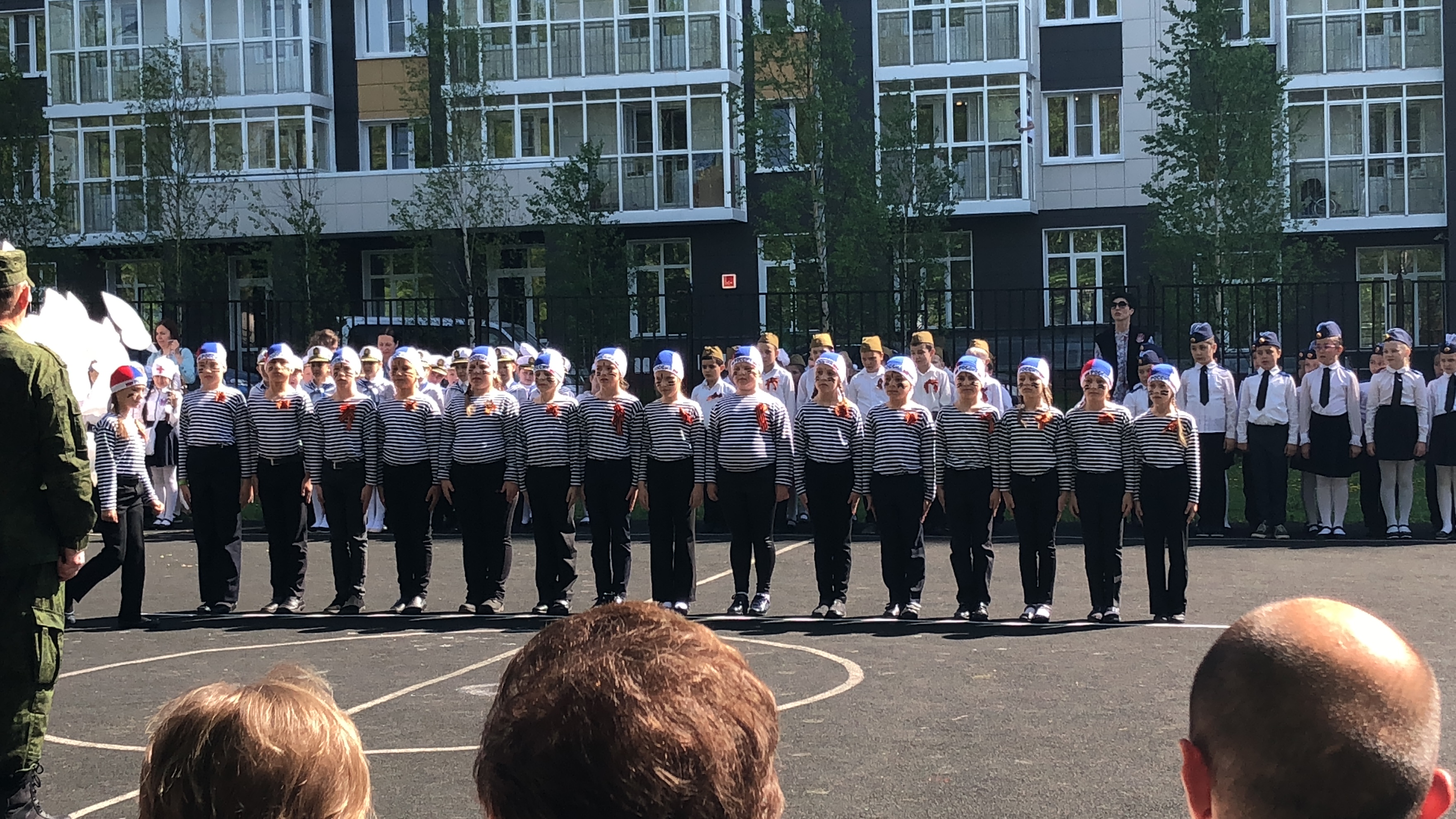 8 мая, как раз накануне самого главного и святого праздника для каждого гражданина нашей страны, накануне 73летия Великой Победы над фашистской Германией наши малыши, наши первоклассники, ученики 1Б класса участвовали в проходившем в школе Параде Победы. Впервые они участвовали в таком важном мероприятии, впервые чувствовали ответственность не только за себя, но и за того, кто рядом, плечом к плечу в строю: собраться, постараться, не подвести. И не подвели! Как же трогательно было смотреть, как они тянули ножку, громко пели, старились не отстать от строя на поворотах марша.